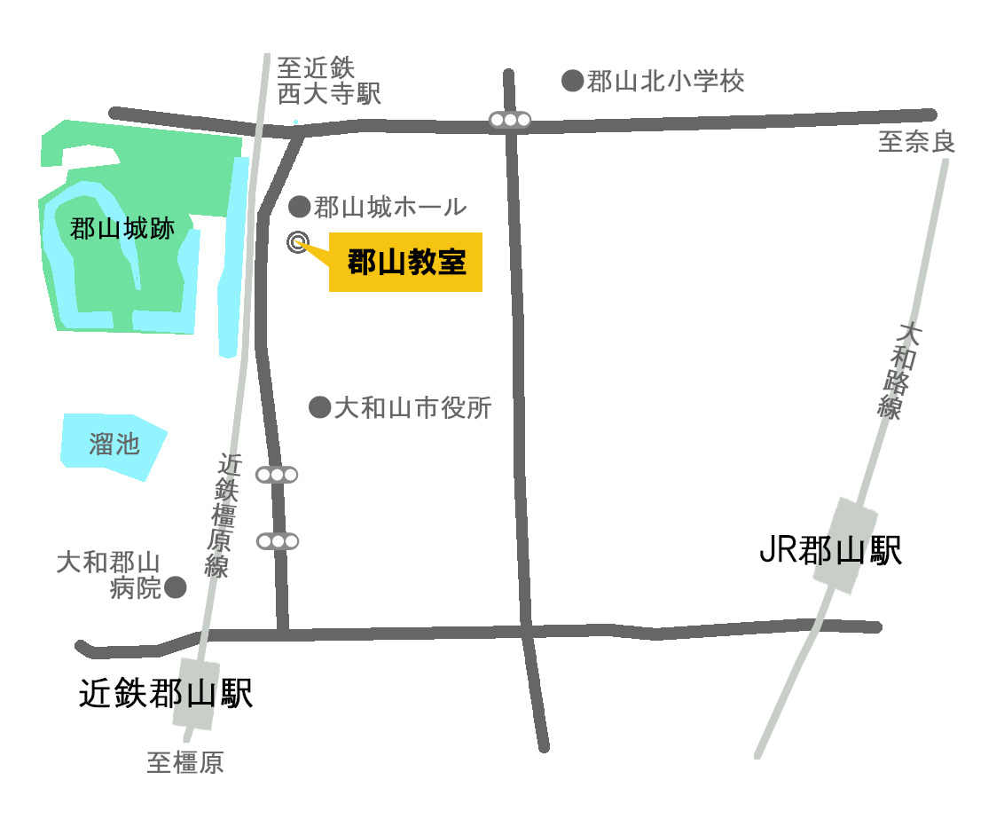 やまと郡山城ホールすぐ隣郡山教室には駐車場がございませんので公共交通機関をご利用ください 近隣の駐車場:やまと郡山城ホール駐車場2時間無料